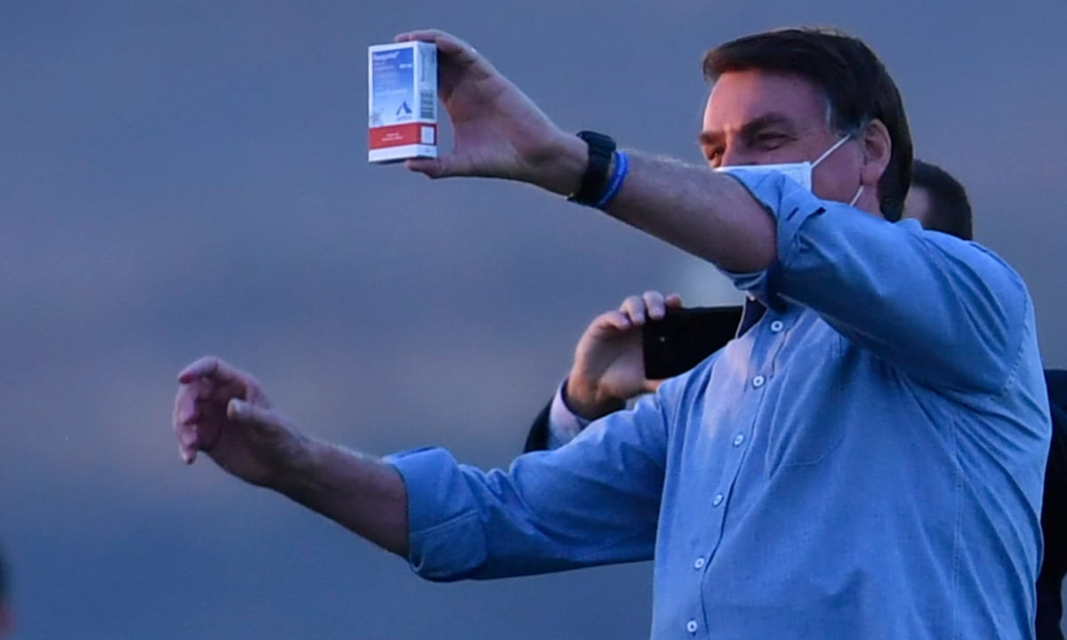 PRESIDENTE JAIR BOLSONARO ENALTECE A CLOROQUINA. FOTO: AFP